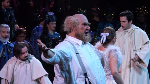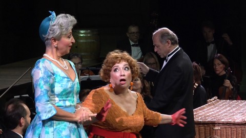 E tra questi il Falstaff ormai per eccellenza altri non è che ‘Sir’ Ambrogio Maestri, ormai la personificazione del personaggio, tali sono le movenze, gli abbellimenti sonori che è in grado di fornire alla voce, ormai perfettamente plasmata sulle corde del vecchio beffato. In questo spettacolo la recitazione è fondamentale, e il quartetto di donne impegnate, Alice, Meg, Nannetta e Mrs Quickly sono state fantastiche. Alice/Eva Mei ha stile e voce ampia sempre a fuoco, Meg/ Laura Polverelli è degna amica e comare di burla con timbro scuro e riccamente tornito e movenze da pin up; la dolce Nannetta/ Sylvia Schwartz è una dinamica e brillante interprete dalla voce lineare, a dir poco spumeggiante Mrs Quickly/ Yvonne Naef, un concentrato di dinamicità dalla voce ricchissima e cavernosa. Il Ford di Tassis Christoyannis brilla soprattutto per capacità attoriale in finzione della quale adatta l’interpretazione vocale; Fenton è un generoso Xavier Anduaga dalla voce dolcemente acuta e sottile, il Dr. Cajus è l’ottimo Francesco Pittari, chiudono il cast i simpatici ed espressivi Bardolfo di Stuart Patterson ed il Pistola di Giovanni Battista Parodi.