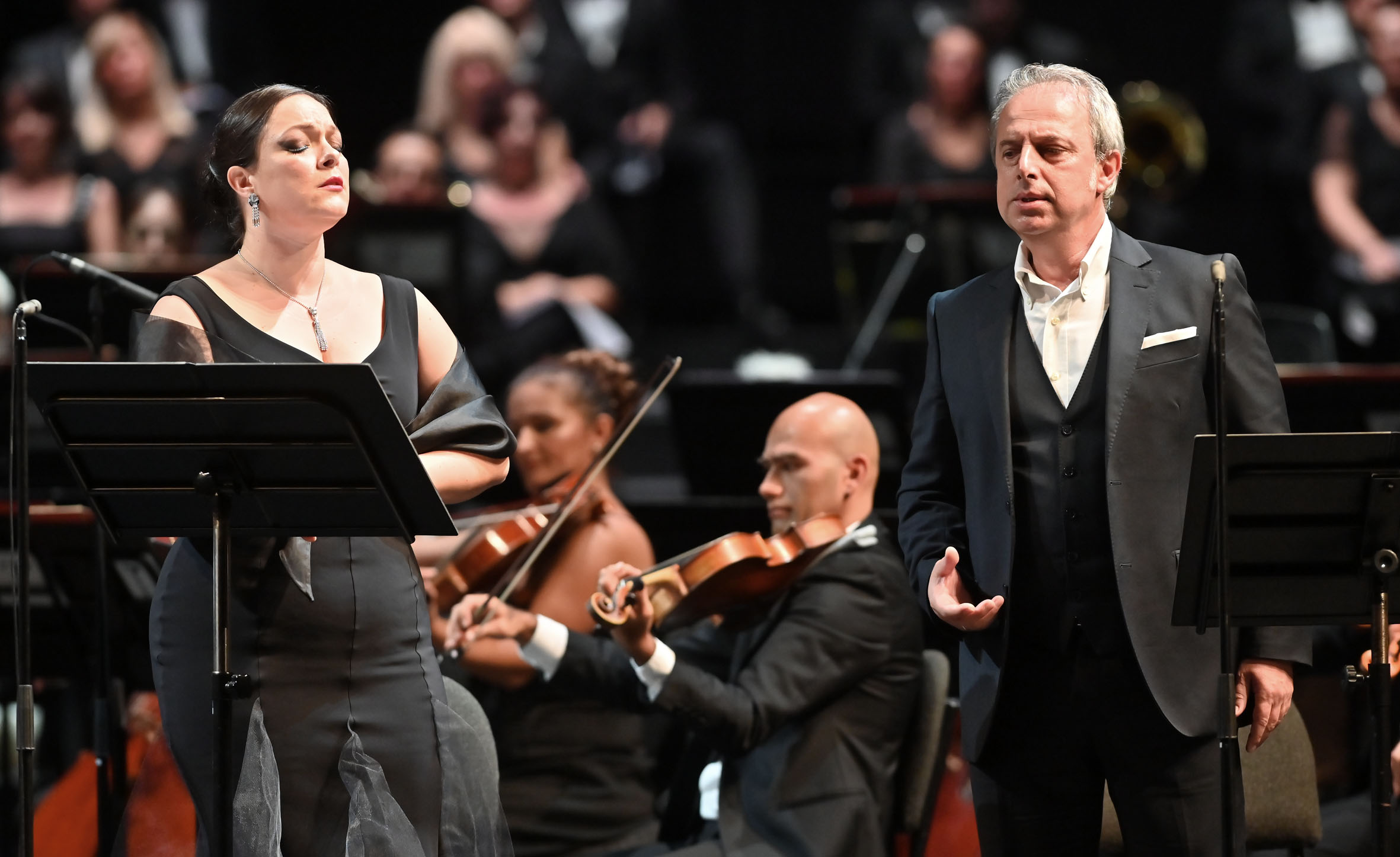 Poco importa se manca la scena e costumi, orchestra e coro appaiono in una lontananza siderale, forse anche troppo; l’atmosfera e la musicalità che sa regalare un teatro al chiuso è impagabile.