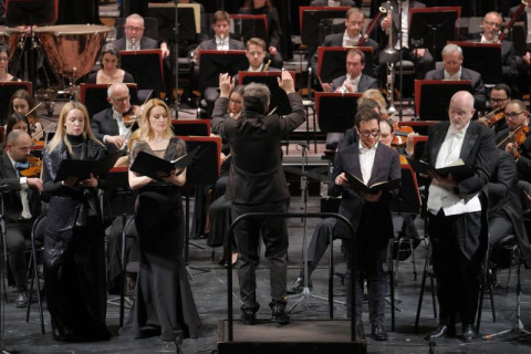 L’origine, del resto, è già un manifesto: 1863, salotto Pillet-Will, dodici cantori, due pianoforti e harmonium, più soirée che funzione, più conversazione musicale che rito. Il pianoforte punteggia, quasi picchietta, l’harmonium vela, ammorbidisce, e sotto questa apparente discrezione si muove un mondo inquieto, ambiguo, elegantemente irrisolto. Poi, inevitabile, arriva la tentazione dell’orchestra, del “fare sul serio”, e Rossini ci rimette mano: non una semplice trascrizione, ma un lavoro lungo, stratificato, quasi ossessivo, che costruisce una versione sinfonica destinata a restare sempre un po’ fuori posto, troppo asciutta per chi vuole il grande sacro ottocentesco, troppo espansa per chi ama la confidenza cameristica. Ed è proprio qui che si inserisce la lettura di Sebastiano Rolli, ascoltata al Teatro Filarmonico di Verona per l’inaugurazione della stagione sinfonica 2026/27, che sembra aver capito — e non è poco — che la chiave non è scegliere, ma tenere insieme. Il suo gesto non impone, non monumentalizza, ma scava, asciuga, ricompone: una disciplina interiore più che una costruzione esterna. Ne esce una Petite messe che respira, che si muove con una sua logica interna, vigile, nervosa quanto basta, ma sempre attraversata da una linea lirica che tiene insieme dramma e poesia senza mai dichiararlo. Il Kyrie non si apre: emerge. Il suono sembra arrivare da altrove, il coro — quello della Fondazione Arena, preparato da Roberto Gabbiani — entra sul fiato, quasi senza peso, e subito si capisce che la questione non è la massa ma la qualità, non il volume ma la relazione. Orchestra e voci si cercano, si intrecciano, costruiscono un tessuto mobile, continuamente cangiante. E quando entrano i solisti — Dave Monaco, Vasilisa Berzhanskaya, Michele Pertusi e Anna Werle  — il passaggio è naturale, senza soluzione di continuità: non numeri chiusi, ma estensioni di un discorso. Il Gloria si distende come uno spazio luminoso ma senza enfasi, più affresco che proclama, attraversato da mille sfumature. Il Credo, invece, sorprende per la sua qualità quasi terrena, poco dogmatica e molto umana, con gli archi di una precisione quasi astratta e la direzione che tiene sempre il filo senza irrigidirsi. L’Offertorio, affidato all’organo solista e rispettoso della scrittura rossiniana, conserva quella dimensione raccolta, quasi privata, che lo rende una parentesi sospesa, priva di mediazioni orchestrali e proprio per questo più diretta. Il Sanctus azzera ogni retorica: niente effetti, niente costruzioni grandiose, solo voci, essenziali, come trattenute. E l’Agnus Dei, con quel Dona nobis pacem detto sottovoce, diventa il punto più scoperto, più fragile e proprio per questo più necessario: una preghiera che non si esibisce ma insiste. Il coro di Roberto Gabbiani lavora per sottrazione: niente magniloquenza, ma precisione negli attacchi, morbidezza dell’impasto, equilibrio interno sempre vigilato, intonazione limpida e quella rara capacità di restituire la complessità rossiniana senza farla pesare. Tra i solisti, il caso più interessante è quello di Vasilisa Berzhanskaya, chiamata a sostenere la parte di soprano pur restando, per natura, un contralto: la voce sale senza sforzo apparente nella zona alta, mantenendo compattezza e qualità timbrica, mentre nel registro grave si intuba leggermente, quasi a riaffermare — con una certa ostinazione fisiologica — la sua vera identità vocale. Ne esce un profilo singolare, non canonico, ma proprio per questo riconoscibile. Il contralto “di ruolo” è Anna Werle, presenza solida, ben integrata, forse un poco leggera ma il suo Agnus Dei è perfetto per magniloquenza e affetto. Michele Pertusi porta con sé una nobiltà naturale, mai esibita: alleggerisce, rifinisce, fraseggia con misura  e con la maestria che conosciamo da quasi più di quarant'anni di onorata carriera. Dave Monaco, dal canto suo, affronta il Domine Deus con naturalezza e un timbro di particolare bellezza, luminoso, ben proiettato, senza forzature, inserendosi con eleganza nel disegno complessivo. E allora, più che una questione di versioni — cameristica o orchestrale, intima o monumentale — qui si coglie un’idea: quella di una Petite messe che rifiuta di scegliere, che resta felicemente contraddittoria, sospesa tra salotto e chiesa, tra teatro e devozione, tra ironia e fede. Un ossimoro perfetto, insomma. Petite e solennelle, insieme. Come solo Rossini poteva permettersi. Teatro incredibilmente esaurito e particolarmente festoso con tutti gli interpreti.