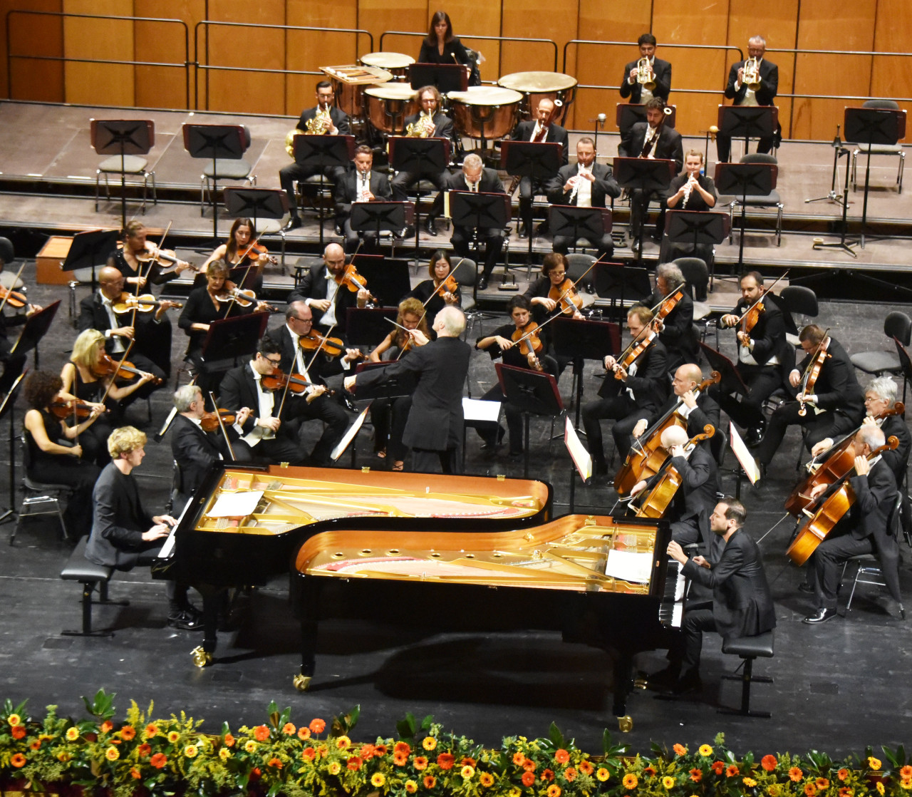 Il primo movimento, Allegro, è stato eseguito con una perfetta sintonia tra i pianisti e l’orchestra, con Noseda che ha garantito un accompagnamento elegante e mai invadente, lasciando spazio ai solisti di brillare. Nell'Andante, il lirismo di Piemontesi ha trovato un equilibrio perfetto con la nitidezza di Lisiecki, creando un dialogo raffinato e profondo. Il Rondeau finale è stato una dimostrazione di virtuosismo e leggerezza, eseguito con una gioiosa effervescenza che ha lasciato il pubblico estasiato. Al termine del concerto, accolti da un lungo applauso, i pianisti hanno offerto due bis: prima, l'ultima delle Danze slave di Dvořák (op. 46, n. 8) al pianoforte a quattro mani, e poi, con due pianoforti, gli arpeggi che accompagnano la melodia del primo violoncello dell’ orchestra ne Il Cigno dal Carnevale degli animali di Saint-Saëns.