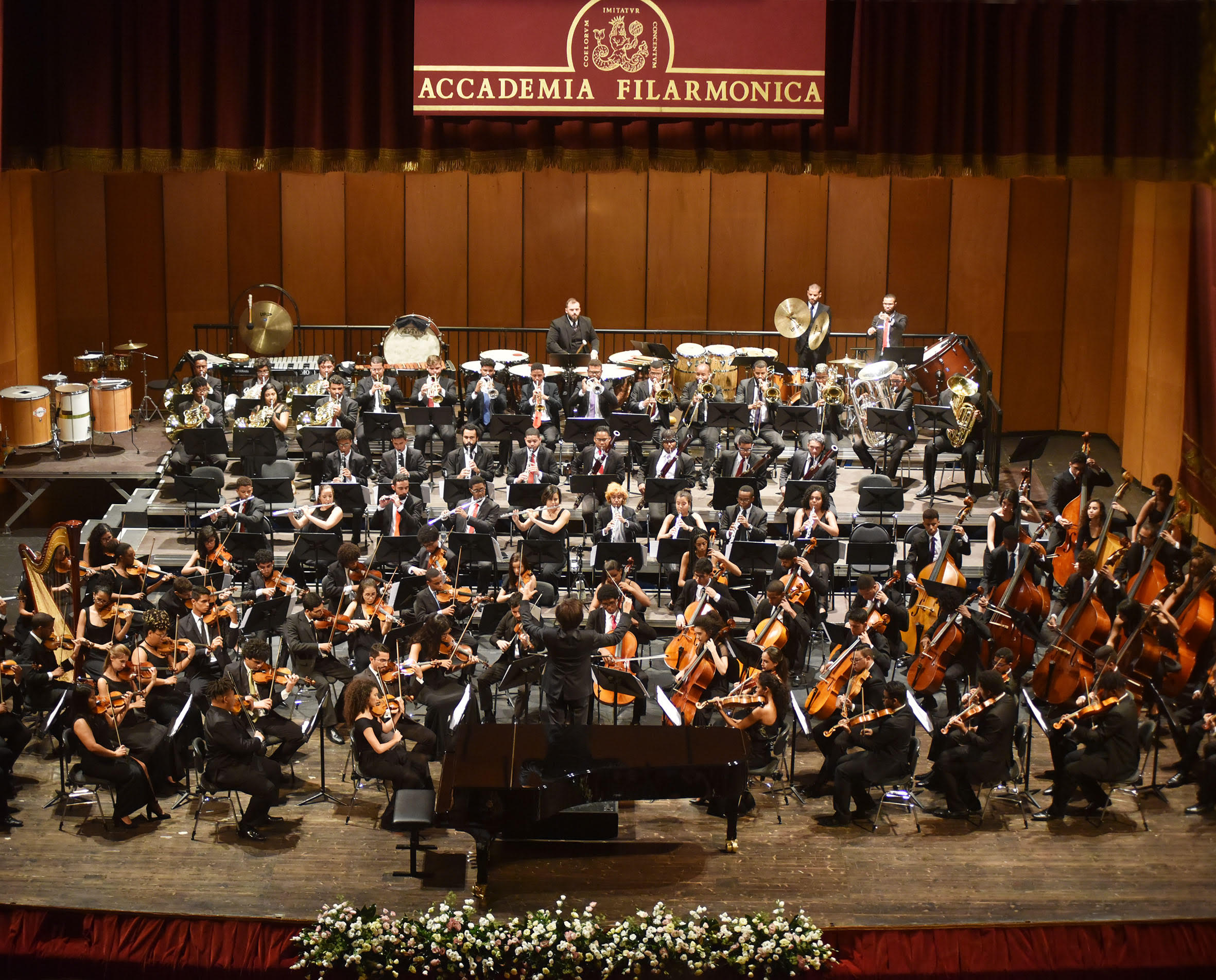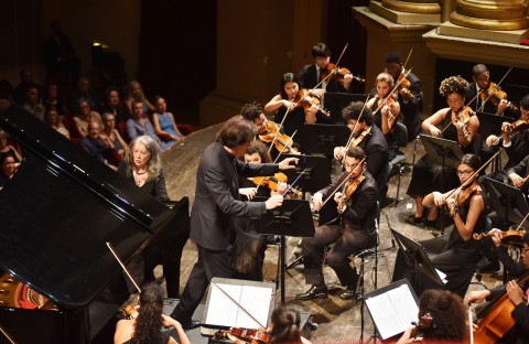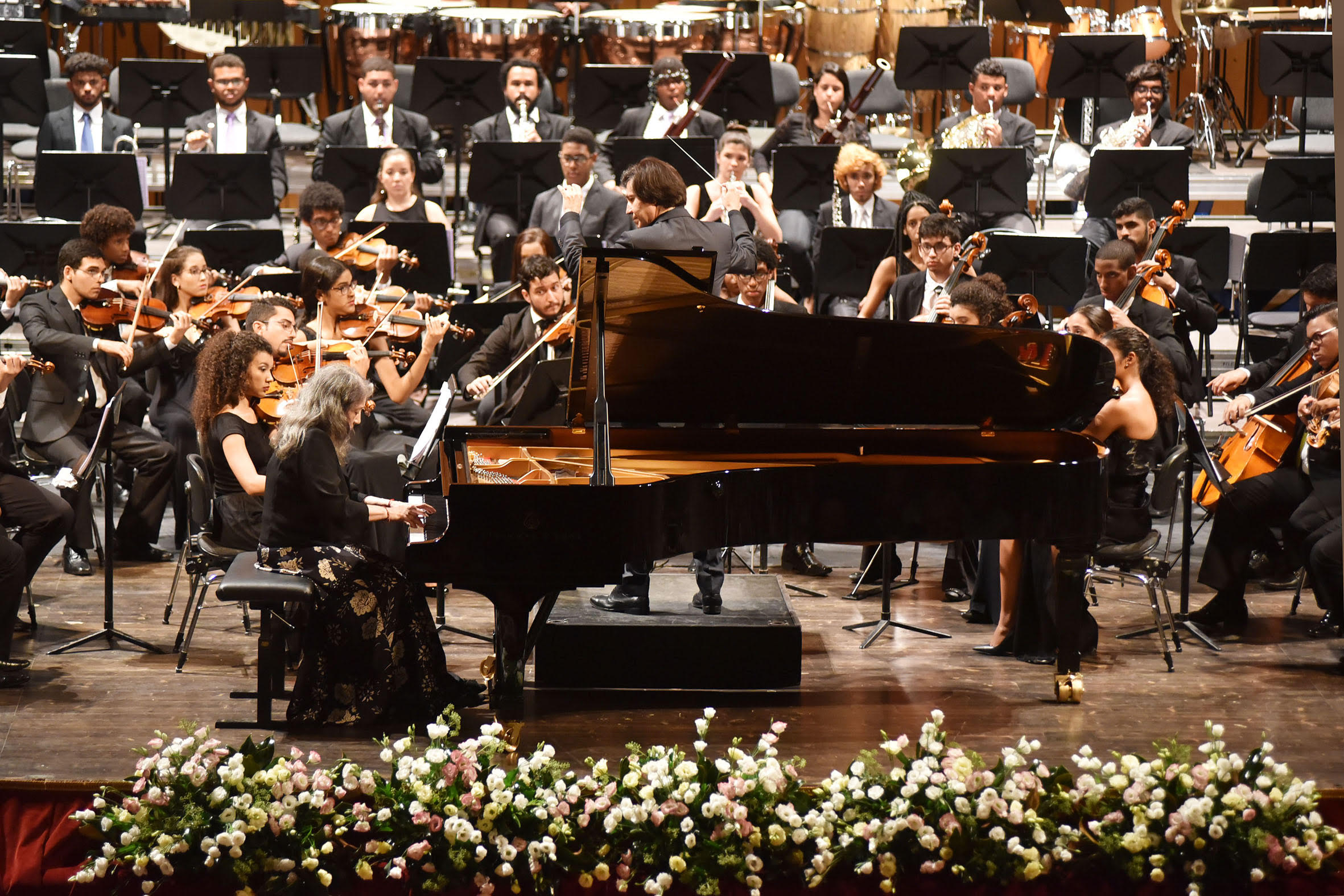 Uno degli appuntamenti più attesi del Settembre dell’Accademia Filarmonica 2018 era sicuramente il concerto che vedeva protagonista una straordinaria Martha Argerich che si univa all’orchestra giovanile di Bahia per il terzo appuntamento di quest’anno. Questa compagine di giovani, in alcuni casi giovanissimi musicisti, è di recente formazione e deve tutto al suo ideatore Ricardo Castro, a suo volta pianista e direttore, che dal 2007 ne è fondatore e direttore artistico. Un insieme di ragazzi visibilmente innamorati della musica, col ritmo pulsante sin dal primo attacco sonoro e che inevitabilmente coinvolge chi ascolta. Siamo certo lontani dal rigore inquadrato delle orchestre ben più blasonate ove la perfezione regna sovrana e forse talvolta la passione è messa in secondo piano. Ma questi ragazzi riescono a trasmettere la dedizione all’arte ed alla bellezza del proprio lavoro come suonassero da molto più tempo. Sensibile è stato il divario tra la prima e la seconda parte di un concerto piacevolissimo, ma che ha evidenziato se vogliamo quale repertorio sia più congeniale a questa frizzante orchestra.