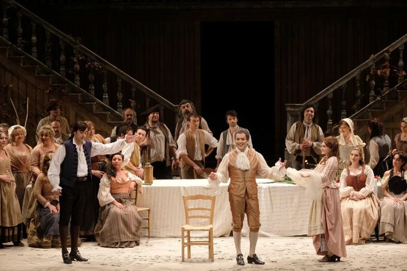 Gli interpreti colgono a pieno l’occasione di far propri i ruoli con spontaneità e scioltezza. Figaro e Susanna sono di fatto deliziosi e molto affiatati: Gabriele Sagona ed Ekaterina Bakanova sono uno spasso in scena; il soprano gode di una facilità estrema nel canto con voce fresca e brillante che anche nei recitativi risulta lineare e ben impostata, il basso ha dalla sua un ottimo materiale vocale scuro e voluminoso che rende perfino autorevole il simpatico personaggio. Attore consumato dalla voce bellissima è Christian Senn come Conte d’Almaviva: il suo strumento è importante e nobilitato da un fraseggio perfetto e dal portamento signorile, nonostante la parte non sia affatto così nobile. Francesca Sassu interpreta una contessa sì partecipe delle trame di Susanna e Cherubino, ma che mostra una certa freddezza quando esprime il suo dolore e la delusione per la condotta del marito. Il furbo e gagliardo paggio è Aya Wakizono che come abbiamo detto più volte ha una voce bella e corposa che sicuramente viene esaltata quando sale sul rigo, ma ha qualche limite nella zona più grave dove fatica un po’ ad essere udita. Il personaggio è ben studiato e strappa più di un sorriso in sala. Francesca Paola Geretto è una fortissima Marcellina, mentre Bruno Praticò è veramente votato alla recitazione: espressivo più che mai ed il suo canto è quasi un recitato assoluto. Bruno Lazzaretti e Paolo Antognetti sono rispettivamente Basilio ed un balbuziente Don Curzio, Lara Lagni è perfetta come Barbarina per voce esile e temperamento da fanciullina un po’ ingenua; chiude il cast Dario Giorgelè come Antonio, il giardiniere ubriacone.