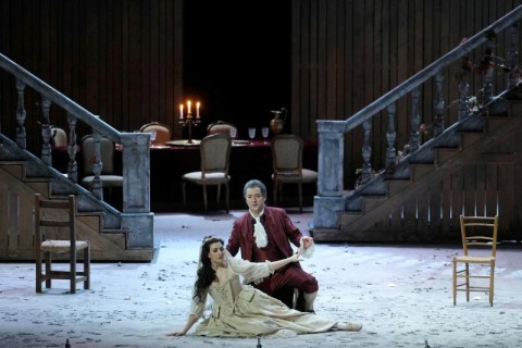 Il regista Mario Martone creò per il teatro San Carlo di Napoli l’allestimento che oltre dieci anni fa debuttò nel capoluogo campano e che da allora ha viaggiato molto, approdando finalmente a Verona al Teatro Filarmonico. Sostanzialmente lo spettacolo rimane lo stesso, che abbiamo visto nell'attuale Circuito OperaLombardia circa tre anni fa, con il dovuto riadattamento agli spazi più contenuti rispetto al San Carlo, operato da Raffaele Di Florio, sempre con scene di Sergio Tramonti ed i costumi di Ursula Patzak che per foggia ci riportano all’epoca originale.
