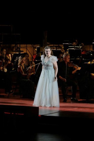 Un altro evento organizzato dalla Fondazione Arena di Verona per quest’anno singolare che ricorderemo per la riprogrammazione generale degli spettacoli in favore delle norme di sicurezza sanitaria. Quattro stelle internazionali si sono alternate o hanno duettato al centro dell’anfiteatro veronese, in una serata che definire dal meteo bollente sarebbe un eufemismo e tutto sommato è stato un bene per gli interpreti non essere costretti in pesanti abiti di scena o a dover correre su e giù per qualche scenografia elaborata, potendo concentrarsi esclusivamente sul canto e sulla propria interpretazione.