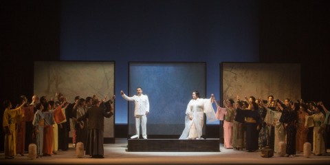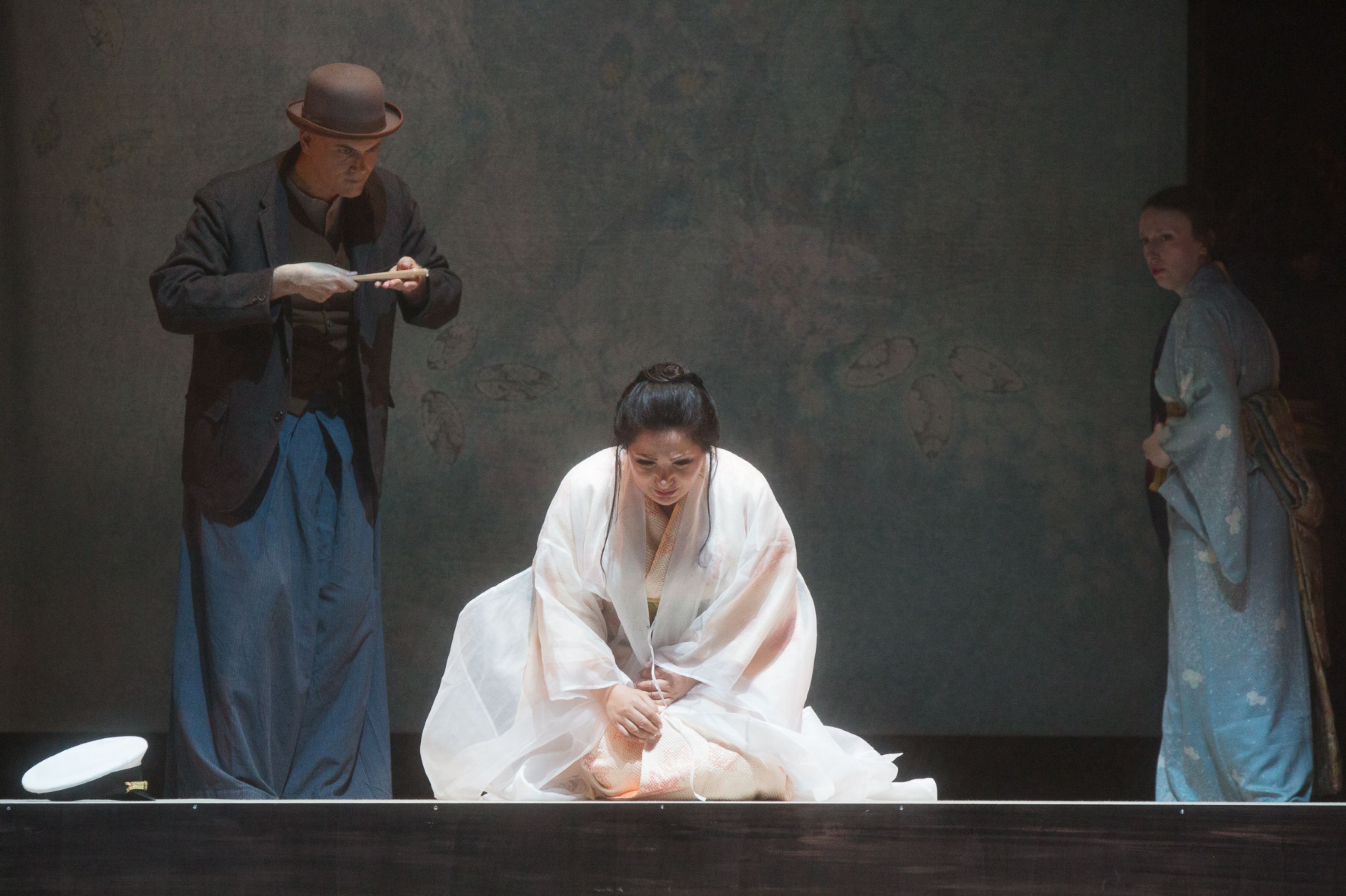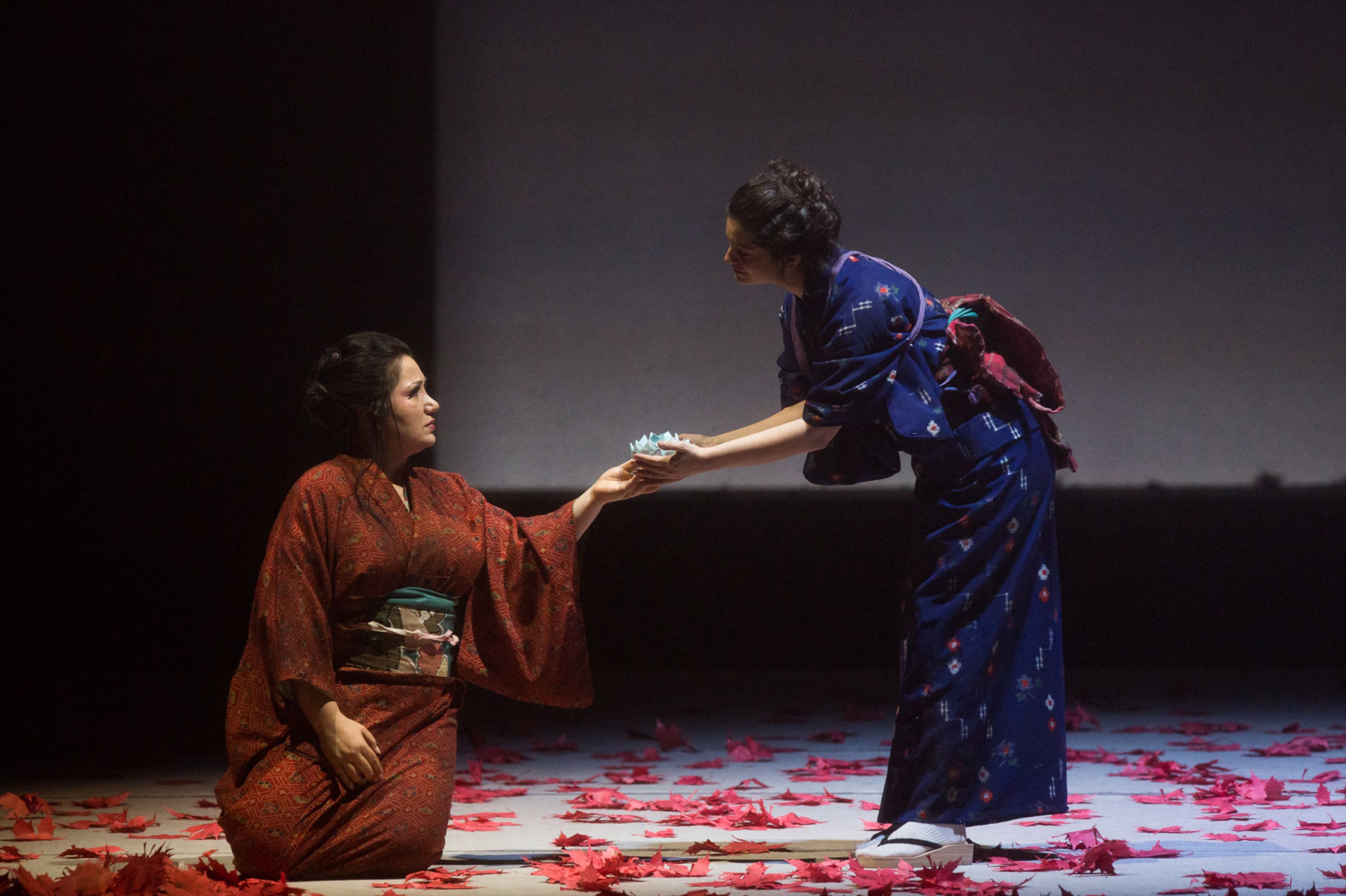 Badate, ella ci crede. Così si può riassumere la Madama Butterfly andata in scena al Teatro Lirico Giuseppe Verdi di Trieste secondo la visione di Alberto Triola. Al centro di tutto viene posto il sogno d’amore della giapponesina (vissuto anche come riscatto sociale): un sogno di cui lo zio Bonzo non può far parte, e non a caso egli fa la sua comparsa fuori scena. Secondo il regista, Butterfly è una ragazzina che cresce in fretta e non si arrende mai. Il suo spirito vacilla un attimo solo durante il duetto con Sharpless, ma dentro di lei c’è sempre un’invincibile primavera, che continua a ricreare in modo compulsivo realizzando fiori di loto con gli origami, anche quando l’autunno è inesorabilmente già arrivato. Con quei fiori decora il giardino quando scopre che il suo amato tornerà, dei fiori uguali a quello che aveva donato a lui il giorno del loro matrimonio. Il meticoloso lavoro eseguito sui singoli cantanti è evidente e dimostra che una regia riuscita si basa sulle piccole cose, anche un semplice gioco di sguardi.