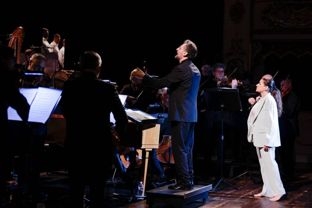 Gianluca Capuano affronta l’Atto d’Orfeo con una direzione che rifugge ogni abitudine interpretativa. Alla guida dei Musiciens du Prince – Monaco, ensemble ormai di riferimento nel repertorio settecentesco, sceglie di destrutturare i parametri consueti dell’esecuzione per rileggerli alla luce di una drammaturgia nervosa, frammentata, quasi intima. I tempi non seguono una logica regolare: non c’è un metronomo interno, quanto piuttosto una fluttuazione continua che modella la forma secondo l’urgenza emotiva. Invece di puntare sulla cantabilità fluida che ha spesso reso questo titolo celebre, Capuano si concentra sul chiaroscuro, sui margini, sui tagli della frase. Ne risulta una tensione costante, accentuata da un uso molto mobile del rubato e da agogiche che sembrano reagire frase per frase, talvolta misura per misura.