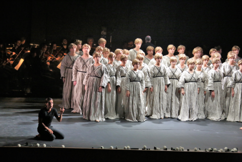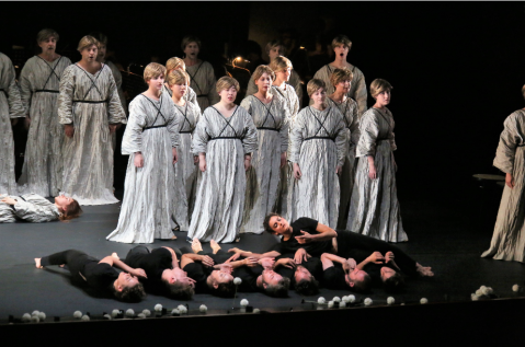 Il coro Iris Ensemble è stato vocalmente partecipe ed in linea con l’esecuzione generale, molto attento all’orchestra nonostante questa fosse in fondo al palcoscenico e quindi di spalle. Nei panni di pastori, Furie, nonché eroi ed eroine i cantori sono stati un po’ trattenuti sul lato espressivo per via della tunica parecchio ingombrante, che unitamente ad un caschetto biondo uniforme per tutti li ha resi meno credibili visivamente.