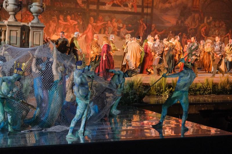 Sul podio, Michele Spotti ha diretto l’Orchestra della Fondazione Arena con gesto energico e comunicativo, scegliendo tempi generalmente vivaci. L’equilibrio fra buca e palcoscenico è stato talvolta messo alla prova da leggere accelerazioni, sempre considerando le difficoltà intrinseche relative al palco immenso ed alle distanze sonore tra le parti in scena. Il suono orchestrale, comunque, è apparso corposo e ben cesellato, con momenti di autentico slancio drammatico.