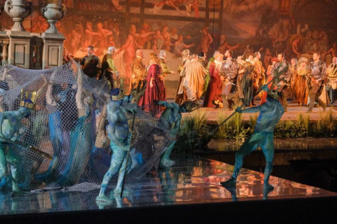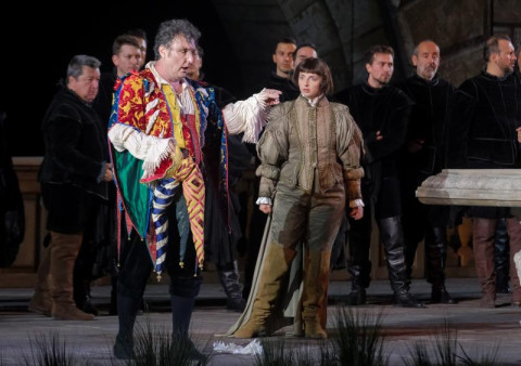 Di segno opposto la prova di Nina Minasyan, Gilda di notevole eleganza vocale. Il timbro, naturalmente setoso, ha trovato un giusto equilibrio tra lirismo e agilità, restituendo momenti di autentica emozione, come nel “Caro nome”. Qualche suono potrebbe essere rifinito, ma il personaggio è risultato credibile e musicalmente curato. Ludovic Tézier, nei panni del protagonista, ha confermato la sua statura internazionale: voce salda, linea di canto impeccabile, fraseggio scolpito e un’intensità interpretativa che ha dato profondità al dramma paterno-filiale. Autentico mattatore dello spettacolo. Di rilievo anche Gianluca Buratto (Sparafucile), autore di una prova scura e minacciosa, e Martina Belli (Maddalena), sensuale e vocalmente ben centrata: insieme hanno dato vita a un quartetto finale di forte impatto.