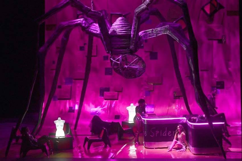 Se i nostri compositori sono spesso stati affascinati dalla letteratura anglosassone, nel caso del Rinaldo fu il compositore naturalizzato inglese Händel a prendere liberamente in prestito dalla Gerusalemme liberata del nostro Tasso le vicende per il suo Rinaldo, modificate in alcuni punti nel libretto di Hill/Rossi. Questo capolavoro di sfarzo musicale e ricchezza barocca è andato in scena per la prima volta in questo fine settimana al Grande di Brescia con una ottima presenza di pubblico. Ma in una epoca all’avanguardia come la nostra, ove in teatro si sperimenta di tutto e di più, del suddetto sfarzo barocco non ce ne è stato neanche l’ombra nello spettacolo concepito da Jacopo Spirei che ha preso vita grazie alle scene di Mauro Tinti. Altro che Crociate, grandi condottieri, eserciti e sanguinose battaglie; Spirei ci porta direttamente ai giorni nostri in un viaggio onirico del protagonista che viene visto come un insignificante impiegatuccio timoroso del proprio capo, che perde la testa per la dolce Almirena entrata a colloquio in ufficio. Le grandi battaglie sono qui litigi fra le mura dell’ufficio da cui parte la scena, e ciò che avviene a seguire è tutto frutto della mente del povero Rinaldo. Dall’ufficio si passa ad una specie di night club, ‘The spider’, dalle forti luci fucsia, di proprietà di una succinta e spregiudicata Armida, una odierna Aracne nella visione di Rinaldo, con tanto di ragno gigante che imperversa al centro della scena. Delicato invece il sogno/giardino circolare in cui si svolgono i momenti lirici tra Rinaldo e la dolce Almirena. Il sogno termina di nuovo in ufficio dove dopo l’ultimo litigio feroce regna finalmente la pace tra i protagonisti/colleghi. Giustamente modernissimi i costumi di Silvia Aymonino. Fondamentali le luci di Marco Alba, soprattutto nell’alcova di Armida, dai toni accesi ed abbaglianti.
