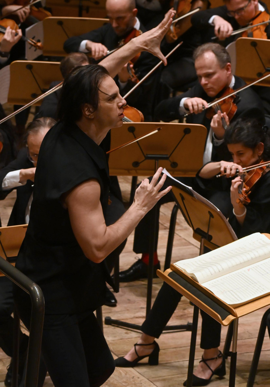 La sintesi di Lorin Maazel diventa qui non tanto un riassunto quanto una centrifuga: tutto viene compresso, accelerato, portato a regime massimo. Distillazione, non narrazione. MusicAeterna risponde con la sua ideologia sonora: perfezione come stile, coesione come dogma. Gli archi non suonano insieme: vengono fusi. Vibrato normalizzato, legato collettivo, attacchi allineati al microscopio. Nella narrazione i del Rheingold il suono diventa superficie continua, quasi industriale: nessuna grana, nessuna porosità. Pianissimi ipertesi, fortissimi lanciati ma sempre dentro una gabbia metrica rigidissima. Il suono non respira: funziona. La Cavalcata delle Valchirie è istruttiva: niente galoppo, niente ebbrezza. Tempi tesi, accenti secchi, corni proiettati come segnali stradali. Valchirie non eroiche ma operative: più reparto speciale che mitologia. Effetto spettacolare, sì, ma deliberatamente anti-romantico. Qui non si cavalca: si esegue. Nel Viaggio di Sigfrido sul Reno il flusso non ondeggia: scorre in linea retta. Le semicrome degli archi sono tenute come su un nastro trasportatore, senza allargamenti, senza “respiro panoramico”. Il crescendo non seduce: accumula. È un montaggio a strati, non una dilatazione naturale. La Marcia funebre di Sigfrido è il manifesto. Tromboni e tube enormi ma asciutti, dinamiche spinte senza allentare il tempo. Il peso c’è, ma è peso strutturale, non tragico in senso teatrale. Meno lutto, più monumento. Più cemento armato che marmo patetico. Nel finale del Crepuscolo, l’apocalisse non si dissolve in una nube sonora. Le stratificazioni restano esposte, i piani sonori separati, la macchina sempre visibile. Niente fusione mistica: qui si vedono ancora le travi mentre tutto brucia. È un incendio sezionato, non una catarsi. I fiati non colorano: marchiano. I leitmotiv emergono come cartelli luminosi, poi subito risucchiati. Nessuna indulgenza tematica, nessuna ammiccante “voce del destino”. Gli ottoni sono massa regolata, mai lasciata andare. Le percussioni non fanno effetto: tengono il telaio. Questo non è Wagner da atmosfera, è Wagner da carpenteria. Ed è proprio questo il punto. Questo Ring è architettura pura. Tempi ipermetrici, pulsazione sempre presente, rallentandi come dispositivi, non come abbandoni. Currentzis dirige come un ingegnere di processo: micro-gestione delle dinamiche, articolazione chirurgica, precisione elevata a valore etico. Il suono non seduce: dimostra. Il risultato è un Wagner sontuoso, sì, ma deliberatamente anti-velluto. Denso, stratificato, ipercontrollato. Un Wagner che non si concede: avanza, costruisce, preme. Niente divano romantico, solo cantiere permanente. Anche l’immagine di Currentzis — giacca smanicata, gesto nervoso, posa da performer-asceta — entra nella logica del dispositivo. Non vezzo: branding estetico coerente. Wagner non come tradizione, ma come materia da laboratorio, da stress-test. E la suite di Maazel, qui, smette definitivamente di essere un “biglietto da visita” del Ring e diventa una macchina sinfonica autonoma, esibita nella sua ossatura. Senza parola, senza teatro, restano nervi, giunture, travi portanti. Currentzis prende questa struttura e la porta a regime forzato: più tensione, più controllo, meno illusione. Personalmente, non è il Wagner del mantello sonoro. Qui il mantello è stato smontato. L’ascolto non avvolge: costringe. Ma proprio per questo funziona come ipnosi meccanica: si entra nella macchina e non si discute più il metodo, perché la macchina, nel suo gelo operativo, è implacabilmente efficiente. Nel quadro dei 150 anni dell’Anello, questo non è un omaggio: è un test di resistenza. Wagner da laboratorio, sezionato, ricomposto, portato in pressione. Un Ring senza parole, sì, ma con una voce orchestrale talmente compatta, tesa e spietatamente controllata da rendere superflua ogni nostalgia. Teatro esaurito, pubblico in delirio. Una serata che difficilmente dimenticheremo.