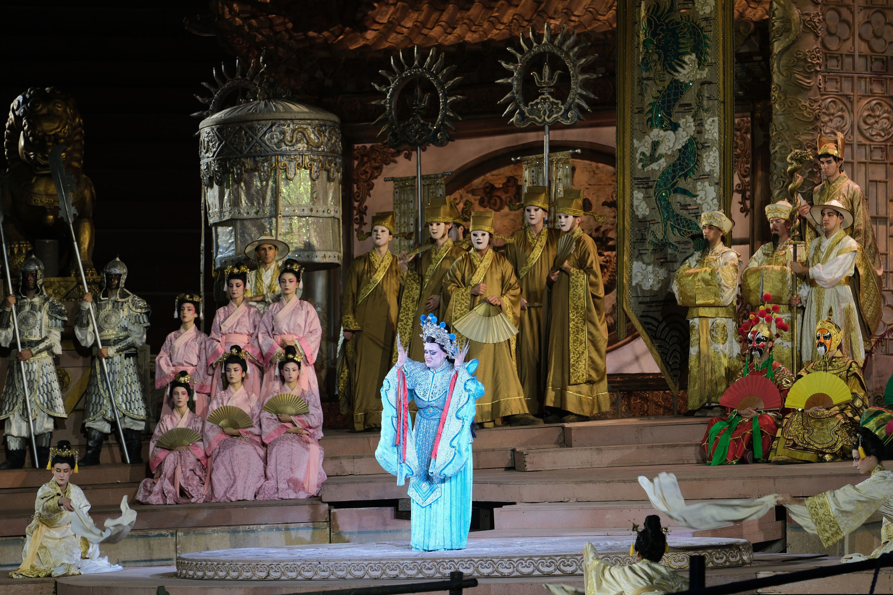 Mariangela Sicilia incanta il pubblico con la struggente interpretazione di una Liù più che mai dolce, devota, mossa da amore incondizionato. La sua padronanza dinamica e i chiaroscuri vocali di sublime raffinatezza risuonano in mezzevoci tonde e ben proiettate, attitudine non banale in un anfiteatro. La sua grande aria finale (“Tu, che di gel sei cinta”) lascia palpabilmente gli oltre diecimila spettatori con il fiato sospeso.