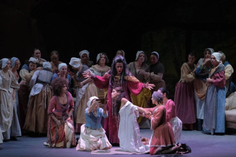 Le immagini video che si possono ammirare all’inizio ci riportano proprio a questo storico allestimento, addentrandoci poi passo passo nelle scenografie assolutamente classiche di Giuseppe Carmignani che rispettano il libretto ed i tempi narrati con garbo ed eleganza. Ovvio che per gli amanti della novità e di quel certo ‘non so che’ a svecchiare opere viste centinaia di volte, non si scopre nulla di travolgente e non vi sono particolari invenzioni sceniche, ma stiamo parlando di un allestimento di oltre un secolo fa e che si rivela comunque fruibile anche oggi. Ad incorniciare l’eleganza generale sono i costumi di Lorena Marin.