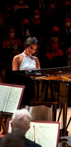 Con il brevissimo Concerto n.5 BWV 1056 di Bach, la Wang riesce a confezionare un Bach “moderno”, forse non ideale, ma sicuramente rapportato alle esigenze traspositive di oggi. Senza mai toccare il pedale di risonanza (nonostante i 14 cm di tacco…) il pianoforte della Wang nel tempo largo di mezzo è un straordinario canto nostalgico, condotto in assoluta libertà musicale sopra il pizzicato degli archi.