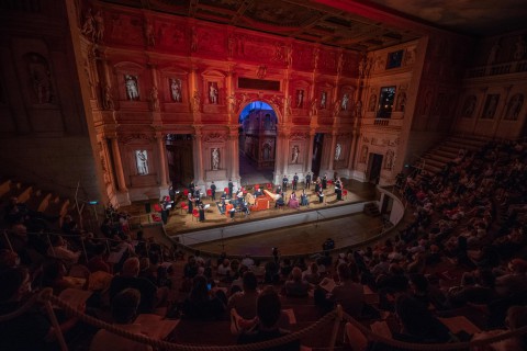Lo stiamo ripetendo da circa un mese come sia soprattutto la volontà degli organizzatori e il desiderio di riascoltare musica a teatro dal vivo, il motore che spinge alla ripartenza di eventi e festival musicali quale è ormai da anni Vicenza in Lirica. Restrizioni e ormai arcinote regole ferree anti contagio non hanno scoraggiato Concetto Armonico ed il direttore artistico Andrea Castello che con i dovuti distanziamenti prescritti hanno portato sulle tavole del Teatro Olimpico un capolavoro come Juditha Triumphans di Vivaldi.
