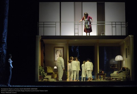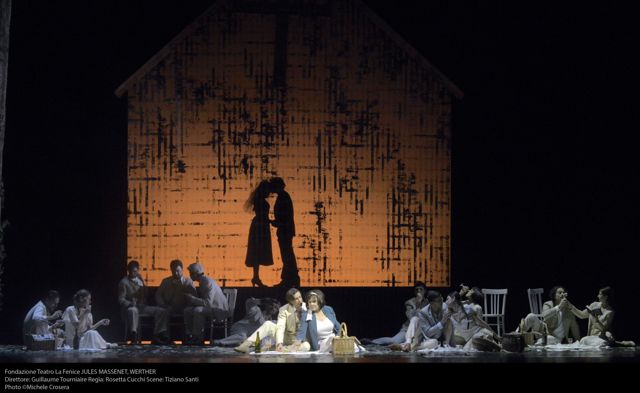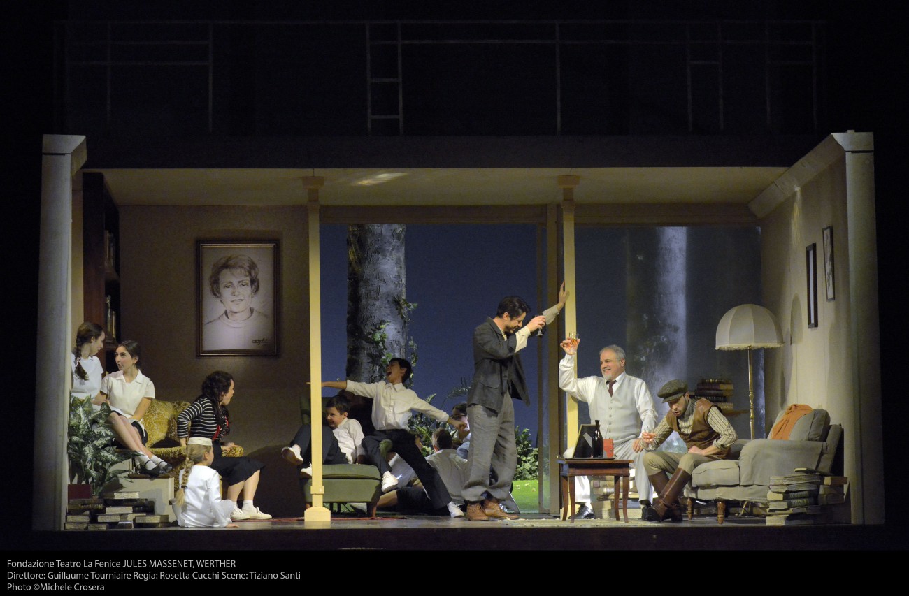 Il Teatro La Fenice di Venezia accoglie sul suo palcoscenico la toccante produzione del Werther di Massenet concepita da Rosetta Cucchi nel 2016 per Comunale di Bologna. Ogni volta che ci si accosta a questo masterpiece del compositore francese non si può fare a meno che indagare nel proprio vissuto e ritrovare sensazioni forse dimenticate o sopite da qualche parte in noi stessi, e probabilmente deve aver pensato questo la regista nell’ideare uno spettacolo davvero intimo, introspettivo e che sicuramente avrebbe fatto piacere a chi viveva e soprattutto ‘sentiva’ ai tempi di Goethe. Le menti insaziabili non si accontentano di viver alla giornata ed ignorare le sconfitte, ma indagano, si chiedono il perché degli eventi e senza risposta consolatoria sprofondano in una inconsolabile tristezza, in uno ‘splin’ tragico che nel protagonista si acuisce fino all’epilogo drammatico. Werther ama la donna di un altro, in lui scorre una passione incontrollabile che non gli consente di concepire simili moti per un’altra qualsiasi. Ed allora scrive le sue lettere strazianti sognando costantemente ciò che non può avere: una casa, una famiglia, un nido in cui coltivare e far crescere questo amore romantico ed infinito. E’ quasi come un’ ombra che da fuori assiste alla sua stessa vita entrandovi solo quando è con la sua Charlotte, per poi ritornare lontano e affranto testimone delle (presunte) gioie altrui.
